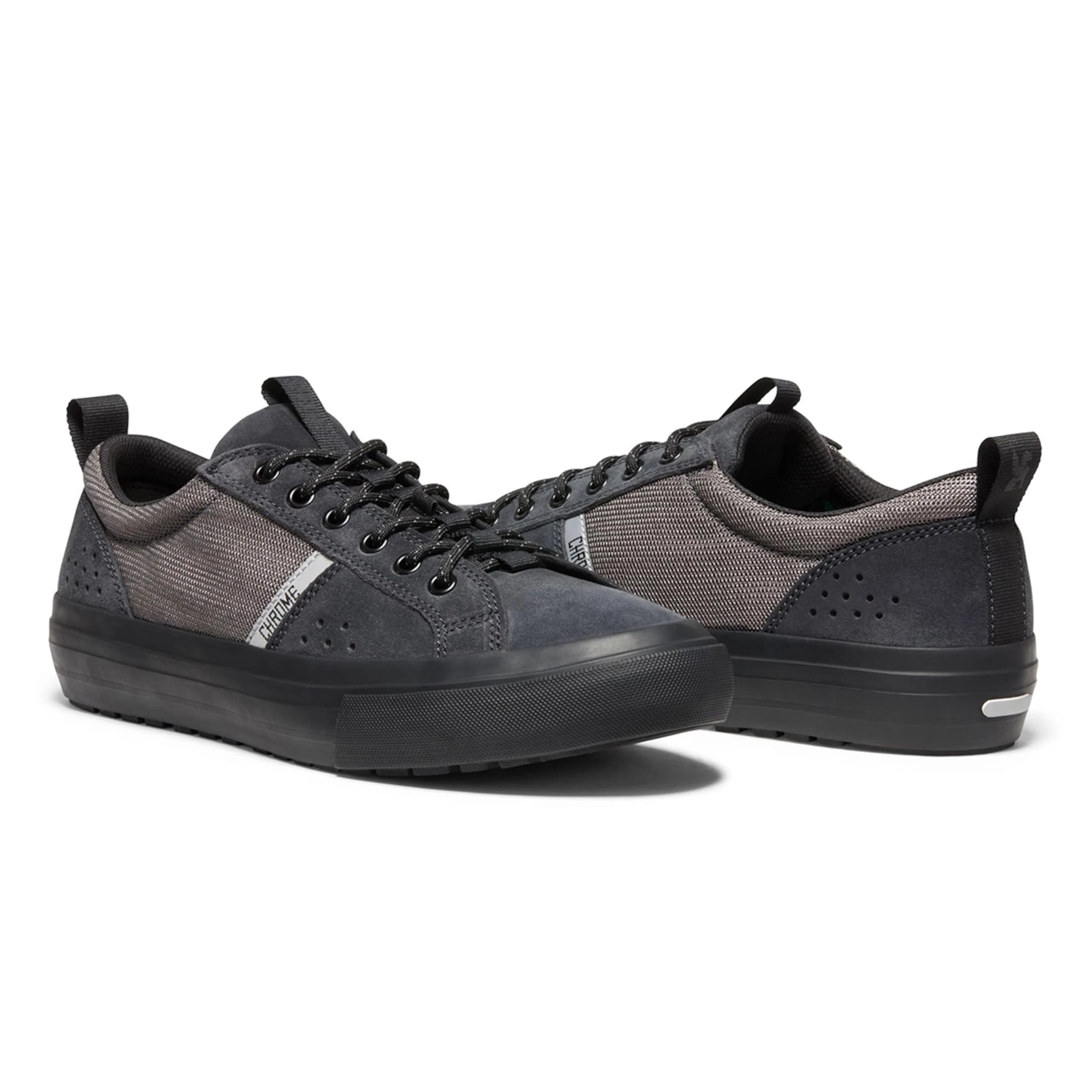 Une chaussure pour toutes les situations: la chaussure de vélo à pédale plate KURSK Panaracer TR de CHROME Industries. Avec elles, vous pouvez tout faire, tant aller sur le sol urbain que loin des chemins battus. Avec cette gamme de chaussures, CHROME met maintenant en jeu la composition de caoutchouc caractéristique de Panaracer, satisfaisant par une semelle Trail Ready qui est à la fois extrêmement adhérente et très antiabrasive. En plus, la semelle extérieure TR est dotée d’un motif qui procure de la traction et de la flexibilité sur le vélo et ailleurs. Le matériau de dessus en mesh respirant de la chaussure prend en charge le refroidissement.