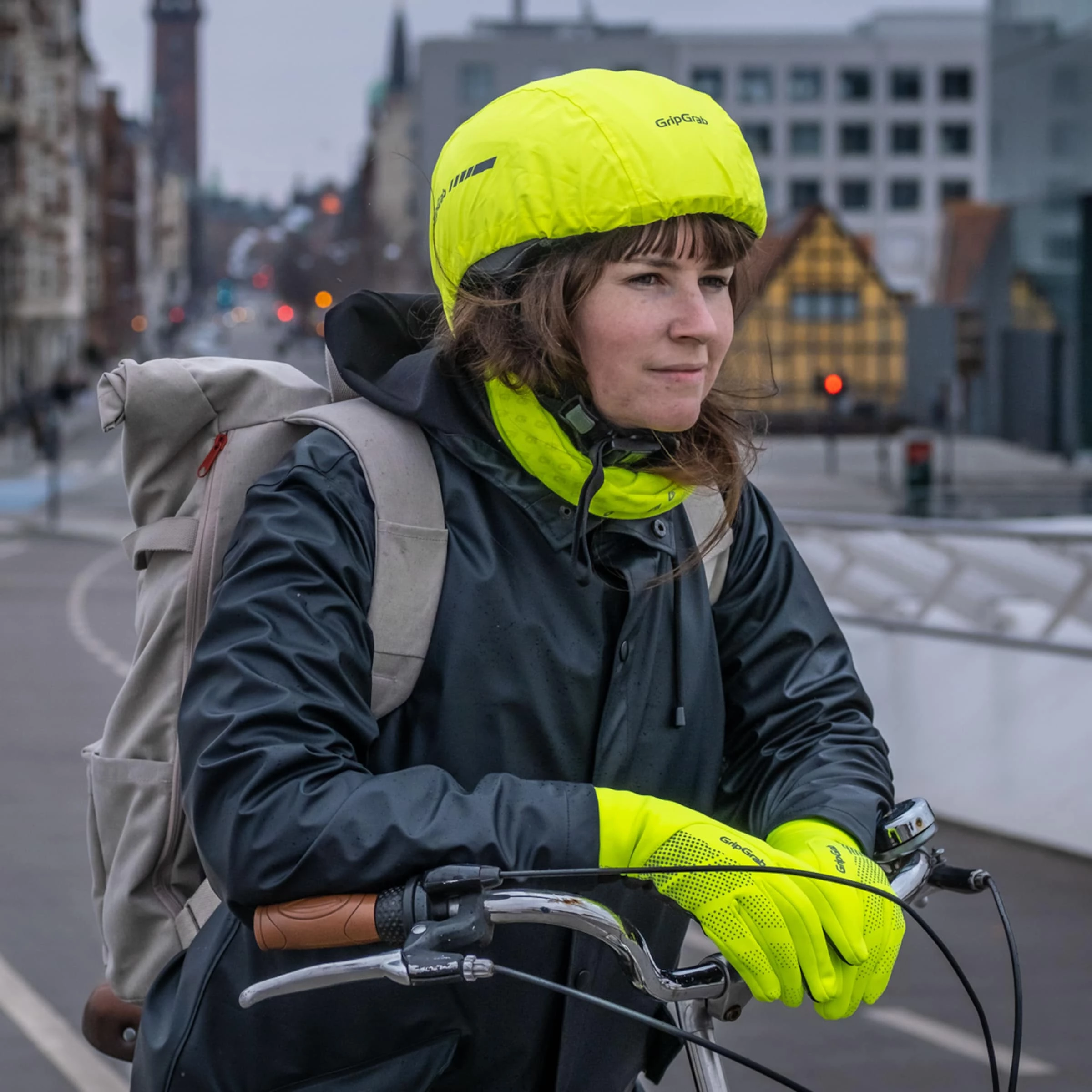 Le couvre-casque HI-VIS de GripGrab est fabriqué en matière étanche pour protéger tout le casque. Il empêche que le vent, la pluie ou la neige passent par dessous pour pour augmenter le confort à vélo quand il fait froid et humide. Une cordelette élastique sécurise le port sur les tout différents casques.